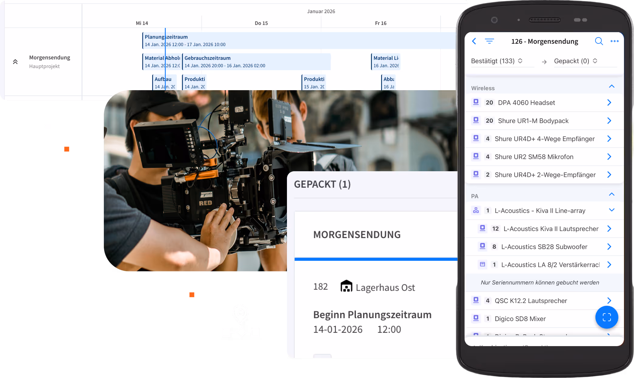 Überbrücke die Kluft zwischen deinen Lagerteams und Produktionskoordinatoren mit speziellen Tools für das Mietmanagement von Broadcast-Ausrüstung.