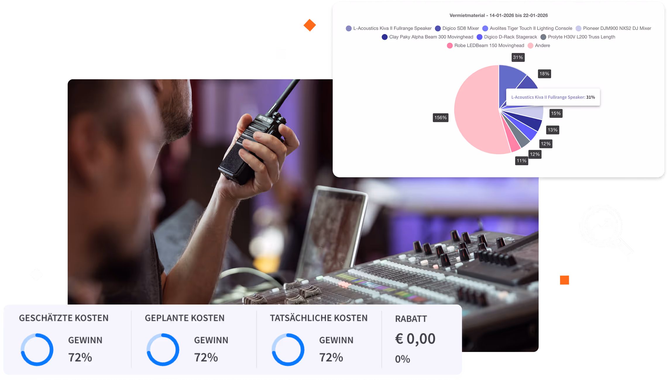 Verfolge externe Zumietungen parallel zu deinem eigenen Bestand. Du weißt genau, wann gemietete Ausrüstung ankommt und wann sie zurückgegeben werden muss, um Verzugsgebühren zu vermeiden.