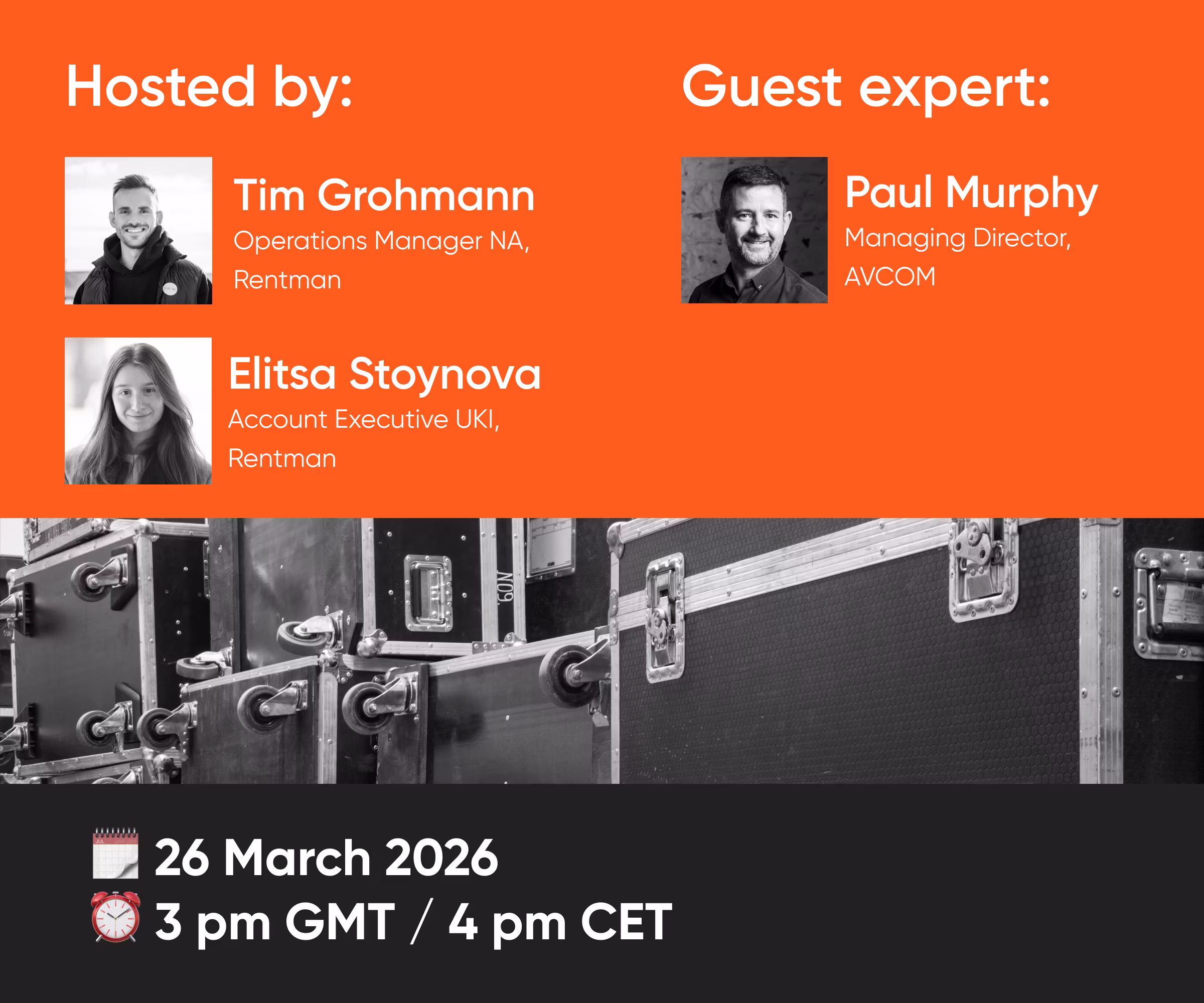 Join Tim and Elitsa from Rentman, alongside Paul Murphy, AVCOM Managing Director, and other industry experts, for a practical session where we'll help you critically evaluate your equipment, processes, and workflows. Walk away with clear, actionable steps to improve efficiency and protect your margins.