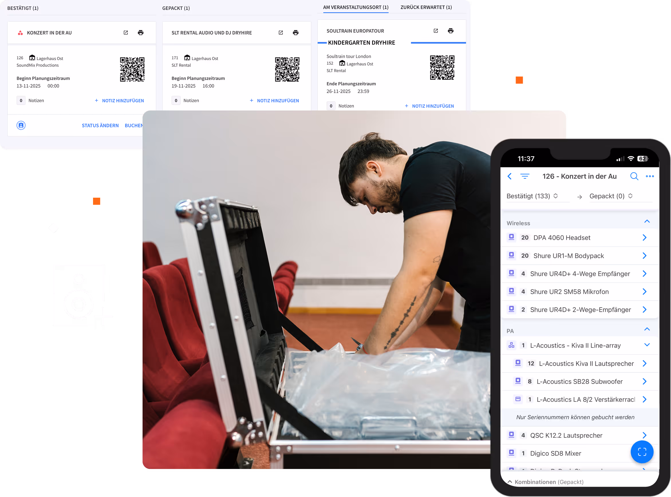 AV-Verleihfirmen benötigen Software, die für serialisierte, hochwertige Materialien entwickelt wurde, die wöchentlich zwischen mehreren Projekten hin- und hertransportiert werden. Rentman verfolgt einzelne Seriennummern über mehrere Produktionen hinweg, verwaltet Zumietungen von Lieferanten und stellt Lagerteams digitale Packlisten zur Verfügung, mit denen jeder Artikel vor dem Versand überprüft werden kann. Die Software wird von AV-Verleihfirmen weltweit eingesetzt.