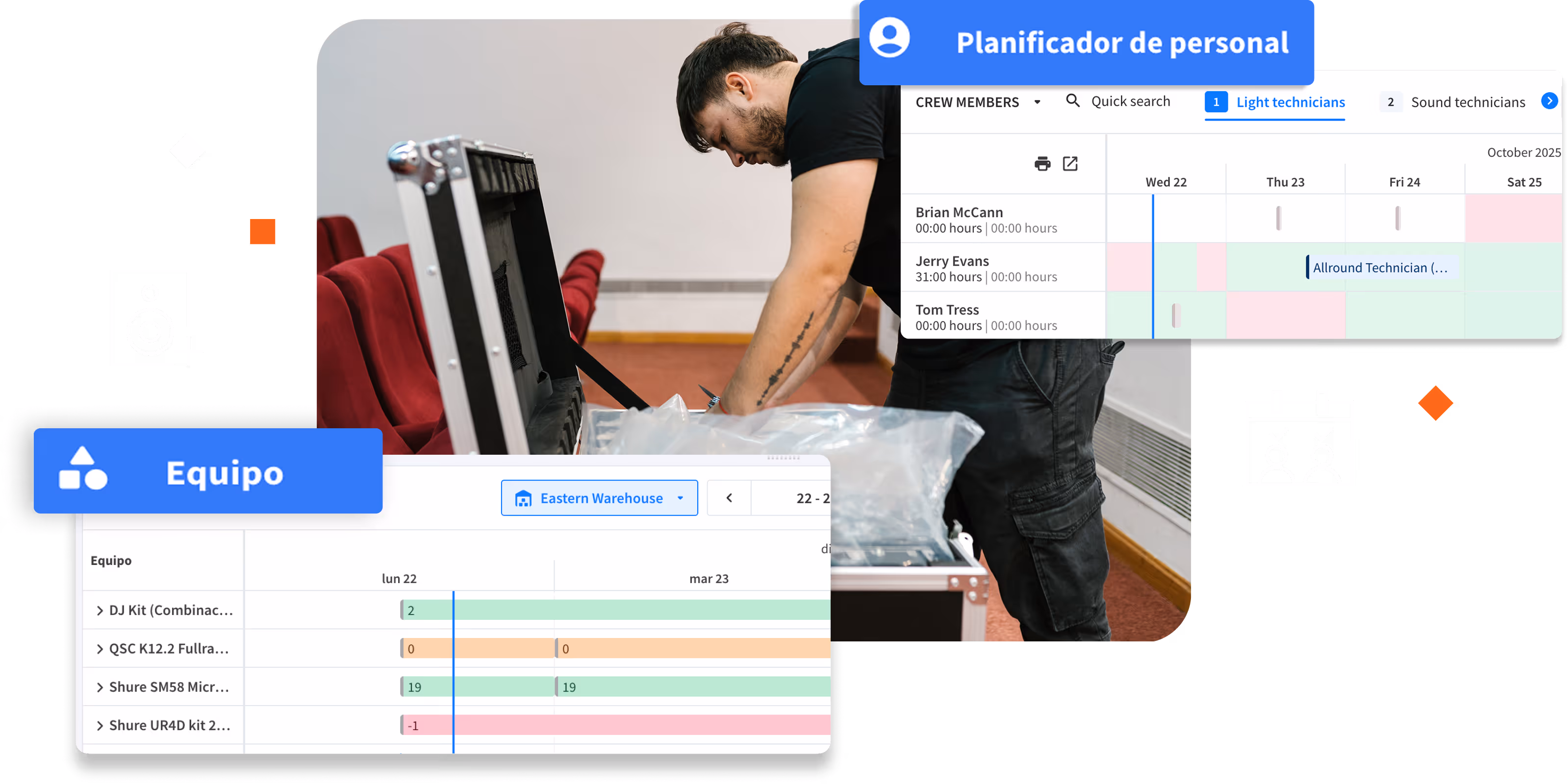Sí, Rentman está diseñado específicamente para unir la gestión de inventario y la programación de personal. Al centralizar ambos recursos en una sola plataforma, los planificadores pueden acceder a una visión general unificada de cada producción, lo que garantiza que se disponga del equipo y el personal adecuados para cada trabajo.
