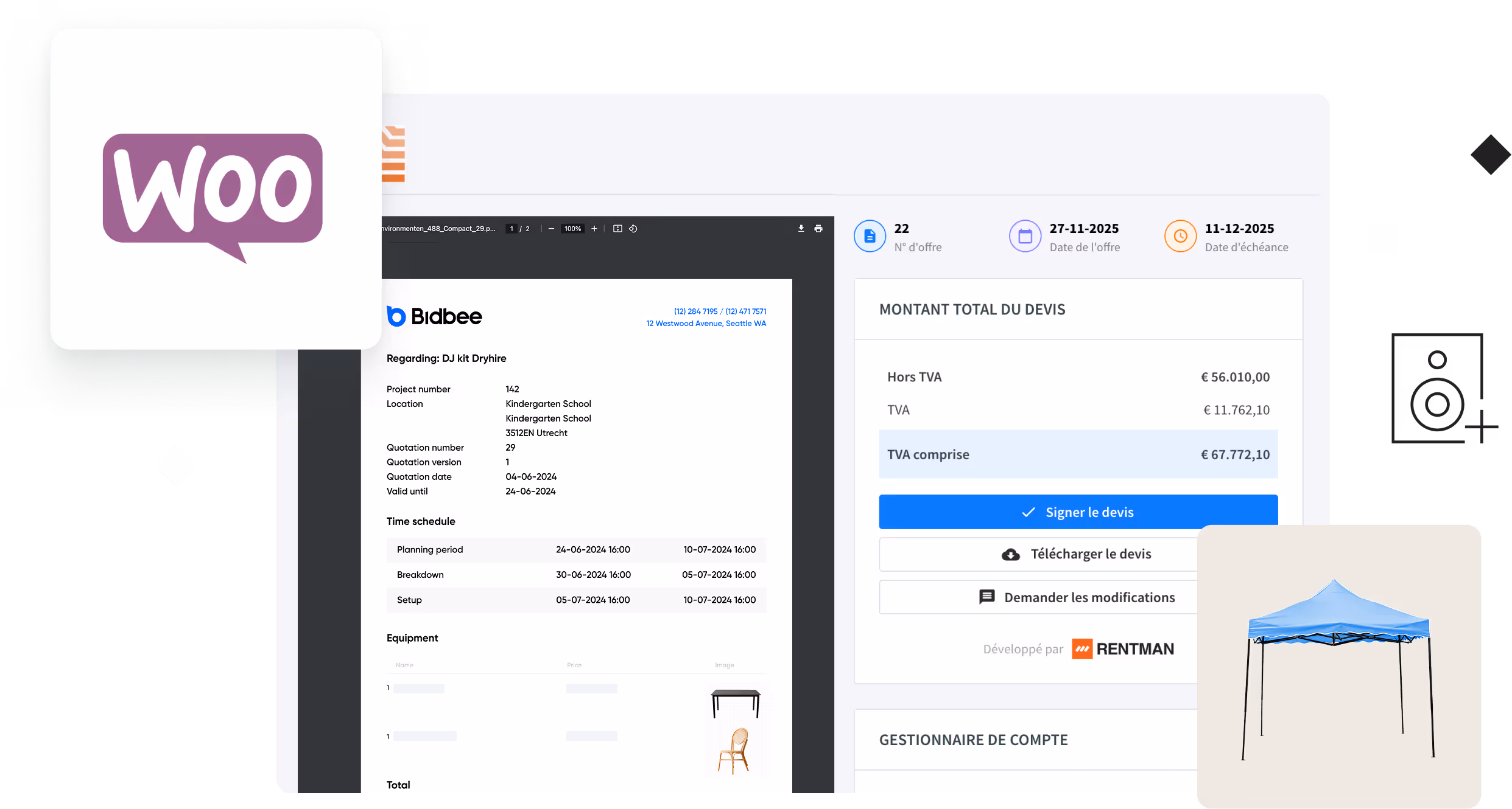 Le package complet pour les entreprises de location dematériel de fête. Créez des processus en libre-service qui permettent auxclients de réserver et de payer en ligne, de synchroniser les stocks et lesdevis, et de libérer votre équipe des tâches manuelles.