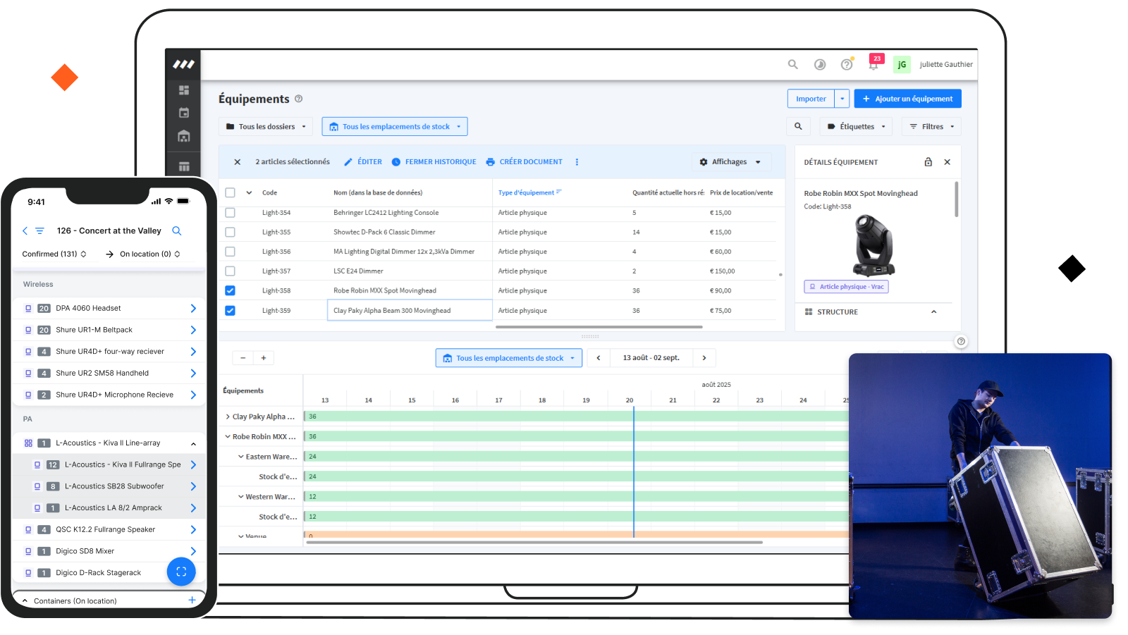 Planifiez, préparez et retournez votre matériel en toute précision, même dans les moments de rush.