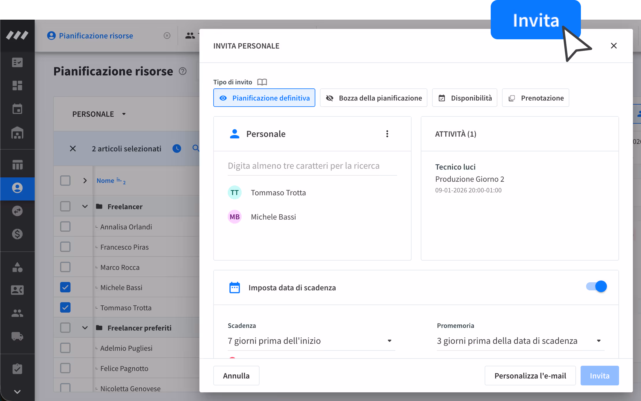 Avvisa centinaia di collaboratori in pochi clic, anche con assegnazione “chi prima accetta”.