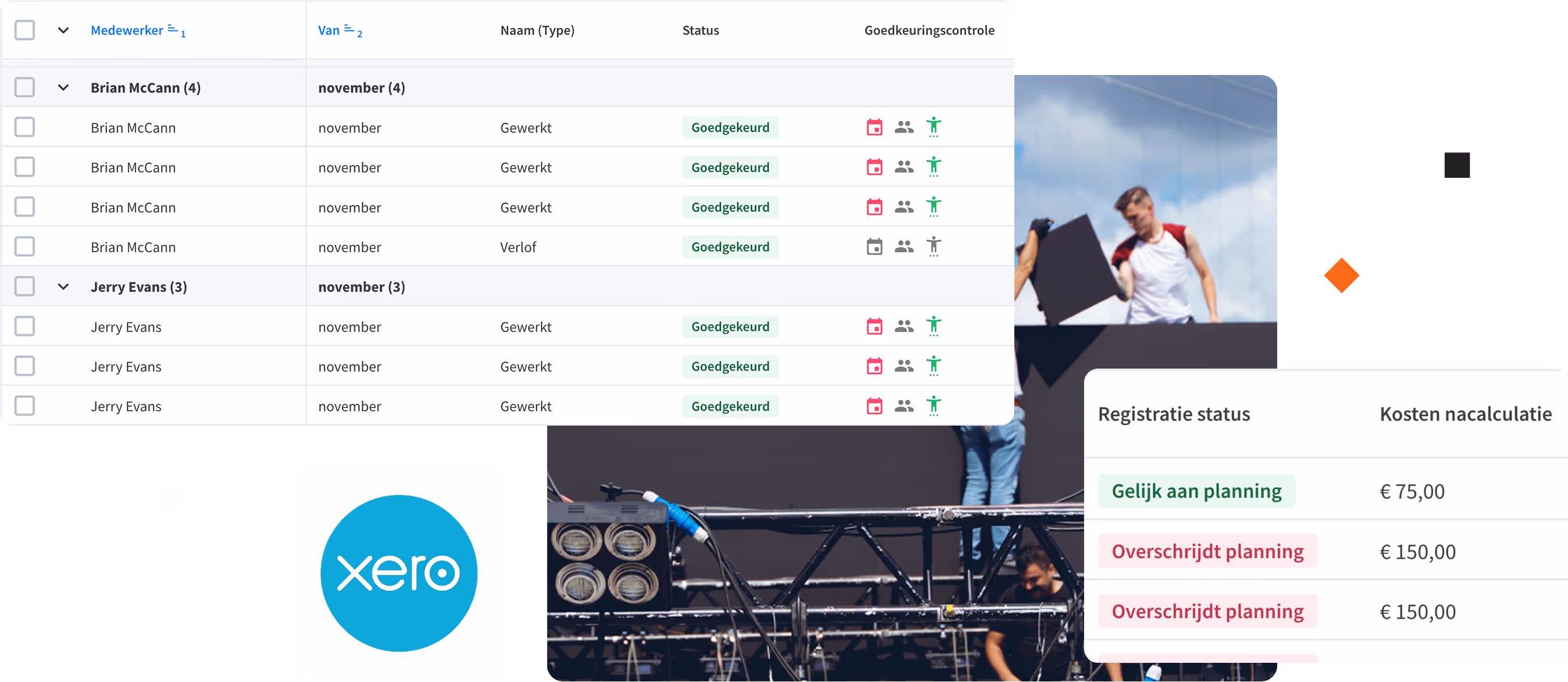 Van het magazijn tot de main stage: weet precies wie er werkt, hoeveel overuren er zijn gemaakt en welke taken er nog moeten worden uitgevoerd.