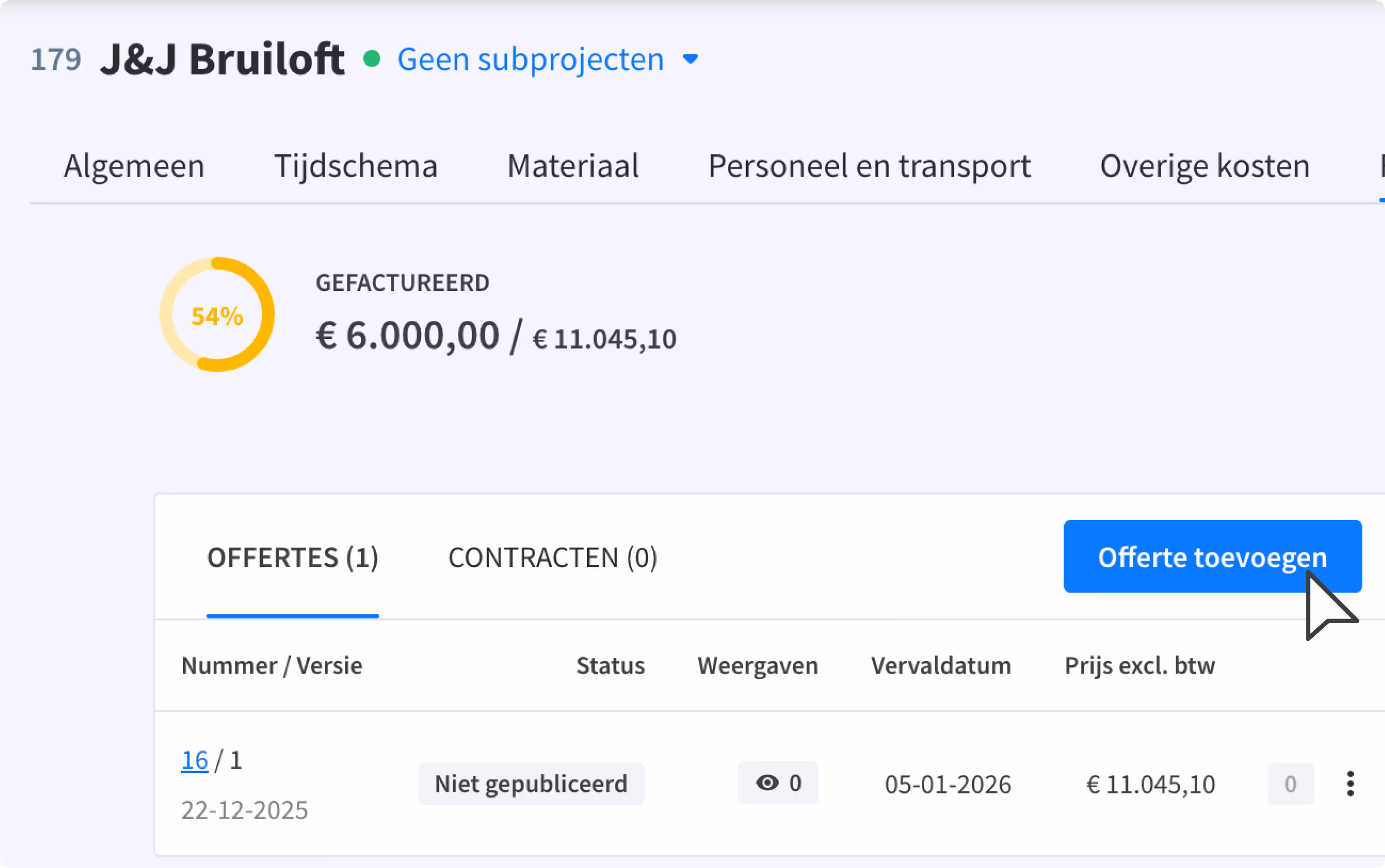 Maak snel offertes met herbruikbare templates, verstuur zedigitaal en laat klanten ze met één klik goedkeuren. Niet meer eindeloosheen-en-weer mailen. En geen misgelopen opdrachten meer.