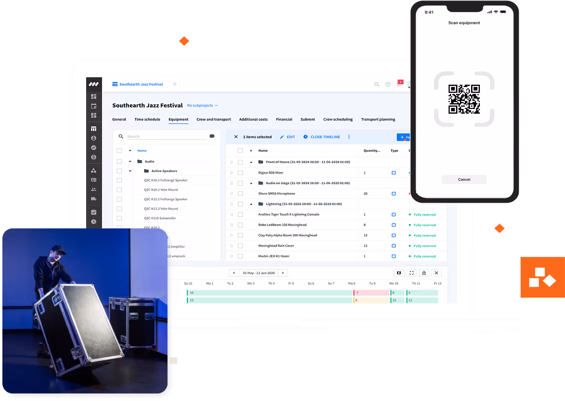 We help live events & media production teams handle last-minute equipment bookings, make equipment packing easier for their crew, and track the location of their equipment in real time.