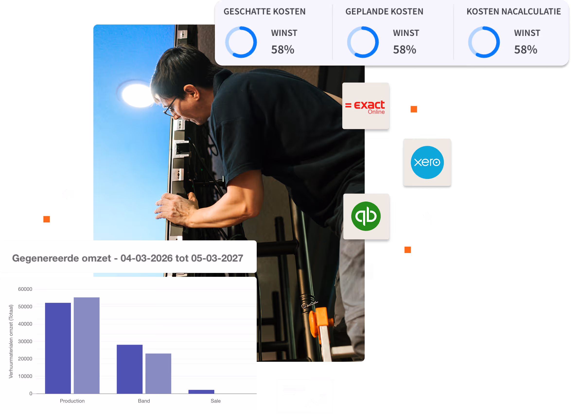 Ja. Rentman integreert direct met QuickBooks, Exact Online en Xero, plus meer dan 7000 apps via API en Zapier. Facturen worden automatisch gesynchroniseerd en de betalingsstatus wordt in realtime bijgewerkt – handmatige overdracht tussen systemen is niet nodig.