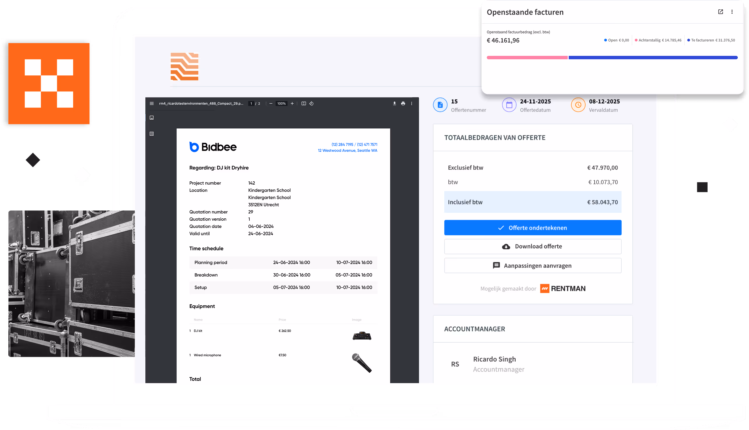 Beheer verhuurboekingen, offertes en betalingen.